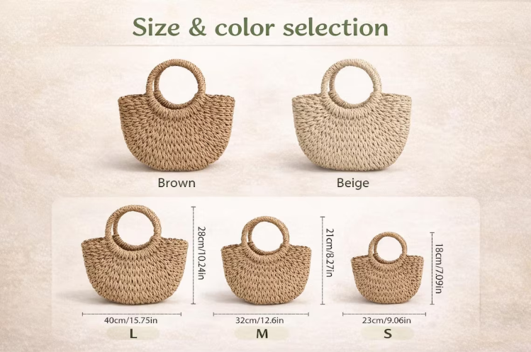 🌿 Handmade Craftsmanship – Each bag is meticulously hand-woven for a sturdy yet lightweight feel that stands up to campus life, beach trips, and daily errands.