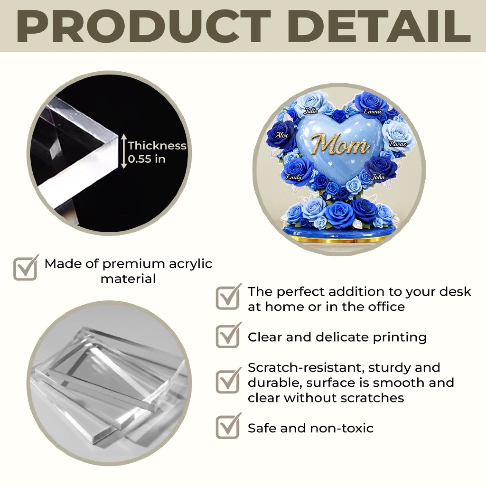 Custom Acrylic Plaque - Personalized Mother's Day Gifts For Mom, Grandma - Mom Love Always Protects
