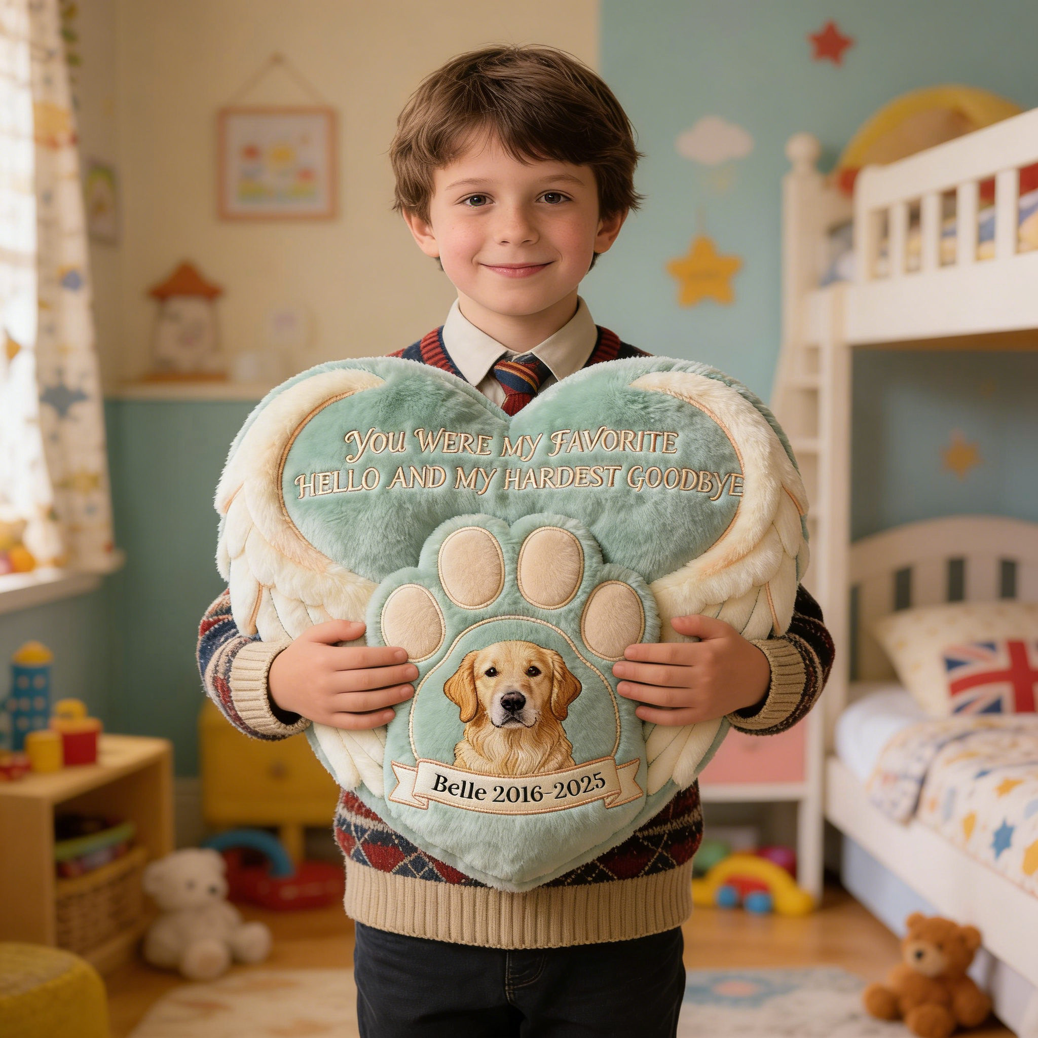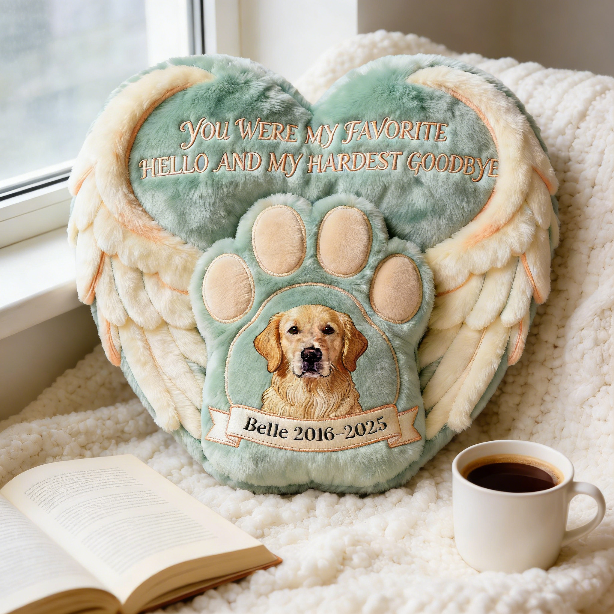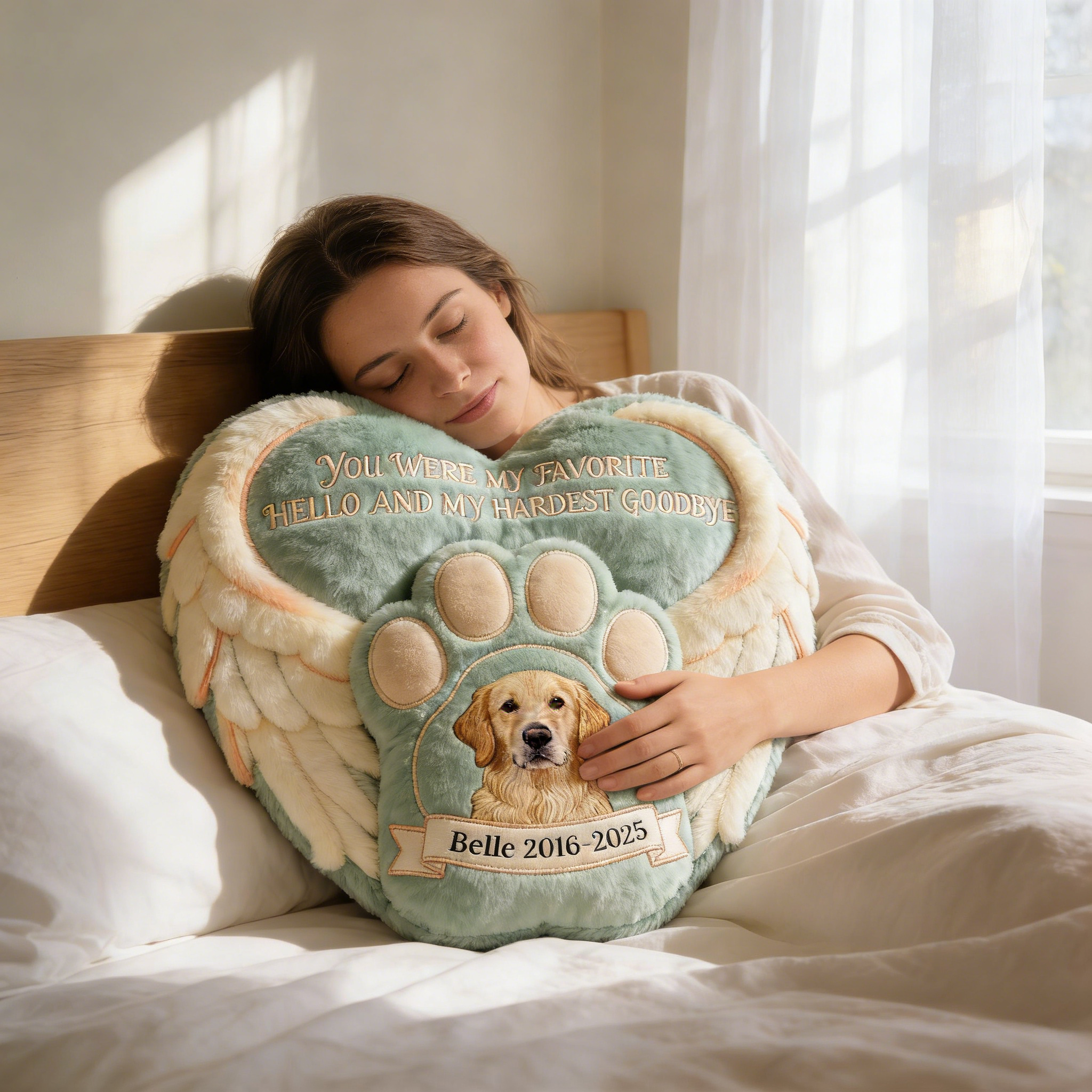 Custom Photo Heaven Dog & Cat Shaped Pillow, Personalized Keepsake To Remember Lost Pets