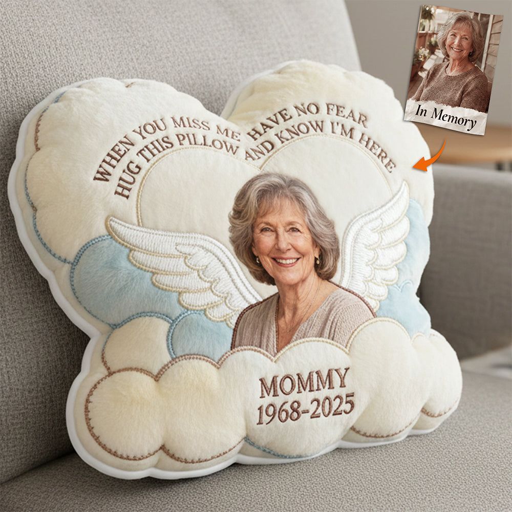 Miss The Angel In Heaven Shaped Pillow, Personalized Keepsake To Remember Loved One